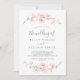 This spring cherry blossom wedding invitation is perfect for a modern wedding. The oriental floral design features a whimsical blush pink watercolor cherry blossom tree branch and green leaves with an elegant Japanese style.