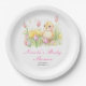 Pretty baby shower paper plates with an adorable chick and pink and yellow tulips. Perfect for a spring or summer baby shower. The words can be changed to suit your own details or requirements