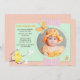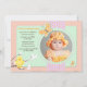 An adorable invitation just perfect for a juvenile, spring birthday or birth announcement. Delight in the plaid-winged butterflies, the baby chick, spring blossom branches and the scalloped edge panel and photo window. It's all 'tied' together with a wide polka dot band.