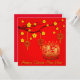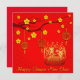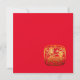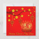 Stylised illustration with yellow "Cherry" blossoms, Chinese lanterns, golden Chinese paper-cut of a Tiger + Happy Chinese New Year in English. Design on square flat card with custom year 2022 in yellow + red background in back (to customise if you want).