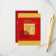 Red Rat paper-cut (printed image) on the corner of an Asian painting with greeting in English in the top (gold lettering and drop shadow not customisable)..Design on vertical party enclosure card with golden image as background in front + custom texts on dark red background in back. You can easily change text in back (font, colour, size and position) and background colour by clicking the customise button. Matching square invitation, greeting card, postcard and more... Perfect for Chinese New Year of The Rat 2020. ----- "The Rat (子) is one of the 12-year cycle of animals which appear in the Chinese zodiac related to the Chinese calendar. The Year of the Rat is associated with the Earthly Branch symbol 子. Year of the Rat is the leap year. People born within these date ranges can be said to have been born in the "Year of the Rat", while also bearing the following elemental sign: