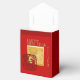 Red Chinese Tiger paper-cut (image printed) on the corner of an Asian painting with greeting in English in the top (gold lettering and drop shadow not customisable). Design on tent favour box with Chinese wishes. You can easily change background colour by clicking the customise button. Available with other designs. Perfect for Chinese New Year of The Tiger 2022.