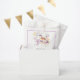 Pretty baby shower favour bag with an adorable bird and purple and yellow flowers. Perfect for a spring or summer baby shower. The words can be changed to suit your own details or requirements