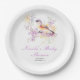 Pretty baby shower paper plates with an adorable bird and purple and yellow flowers. Perfect for a spring or summer baby shower. The words can be changed to suit your own details or requirements