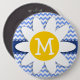 Spring Daisy; Blue Chevron Pattern 6 Cm Round Badge