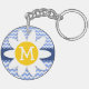 Spring Daisy; Blue Chevron Pattern Key Ring