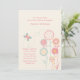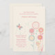 Soft, pastel colours in peach and light teal with a cream background create this adorable invitation. It features whimsical flowers and a fluttering butterfly. Perfect for a girl's birthday celebration.