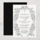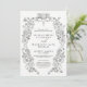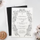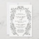 Hand-drawn Spring fleur de lis style elegant framed wedding invitation with styled spring blooms, leaves, tendrils and little butterflies on a white background. In simple classic mono tone black and white, personalise with your own wedding details and monogram initials up the top. Other colours and matching items are available or can be created by request. © Original hand drawing and design by Sarah Trett for www.mylittleedenweddings.com on Zazzle.