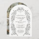 Hand-drawn Spring fleur de lis style elegant framed wedding invitation with styled spring blooms, leaves, tendrils and little butterflies on a white background on one side and your own photo on the back. Simple classic monotone black and white, personalise with your own wedding details and monogram initials on the front and a your own special photo on the back. Other colours and matching items are available or can be created by request. © Original hand drawing and design by Sarah Trett for www.mylittleedenweddings.com on Zazzle.
