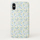 Cell phone case with bright, cheerful spring flower doodle pattern in blue and green hues.