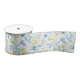 Ribbon with bright, cheerful spring flower doodle pattern in blue and green hues.