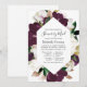 Simplistic dark plum and white hellebore and tulips springtime long distance baby or bridal shower by mail invitation.