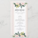 Romantic, modern and elegant menu card featuring calligraphy script and watercolor florals.