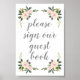 "Please sign our guestbook" sign featuring blush pink watercolor florals with a modern calligraphy script.
