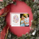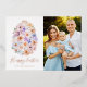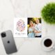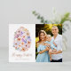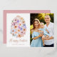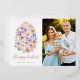 Simple and cute Easter photo card featuring dusty rose pink, peach, light blue, and violet purple watercolor flowers arranged in the shape of an Easter egg. "Happy Easter" is displayed in a rose gold foil script with your names shown below. The rose gold foil Easter card reverses to a solid dusty rose background with space for additional text and images.