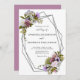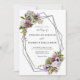 Introducing our Spring Floral Greenery Geometric Wedding Invitation, perfect for a spring bohemian celebration. Featuring realistic multi-coloured flowers and greenery with modern geometric designs, this invitation showcases a stunning blend of purple and pink blooms, light blue and white accents, and elegant script typography.