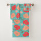 Spring Floral Pattern Hand Drawn Teal Peach Bath Towel Set