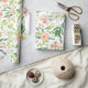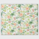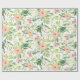 Watercolor springtime floral pattern wrapping paper in accents of peach and coral with abundant greenery.
