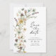 Spring Floral Photo Save The Date Card. This elegant wildflower non-photo save the date invitation features beautiful hand-painted watercolor blush pink, dusty blue, and sage green pressed flowers with black text on a white background. Find matching items in the Wildflower Wedding Invitations | Pressed Flowers Collection.