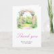 Pretty wedding Thank You Card with a floral arch and pink purple flowers. Perfect for a spring or summer wedding. The words can be changed to suit your own details or requirements