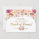 Will You Be My Maid of Honour Card with pink, gold, spring floral design. Perfect for your romantic spring wedding.