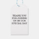The quality and weight of the paper used was excellent. I love the feminine floral design. I gave received so many compliments on the unique cut of the tag. I also use these tags as a business card. This is my 3rd time ordering this design. I love it! I was very pleased with the printing. I was excited that I was able to print separate messages on both sides of the tag. Very clean look.
