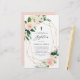 Invite family and friends to your event with this customisable baptism invitation. It features watercolor white and blush pink spring flowers, greenery accents and a faux gold foil geometric frame. Personalise this floral baptism invitation by adding your own details. This watercolor baptism invitation is perfect for spring baptisms and baby girl baptisms.