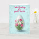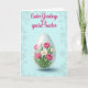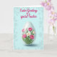 This design shows a softly glowing, crystal-like egg-shaped vase centered on a spring scene, holding a bouquet that feels like a gentle gift between close friends 🌷. Inside, large fuchsia-pink flowers with many layered petals open wide, their golden-yellow centers leaning toward one another like they’re sharing a quiet moment. Smaller white blossoms with bright yellow hearts nestle between the pink blooms, adding a tender contrast that reads like a sweet, supportive bond. Fresh green stems and leaves fill out the arrangement, and the light catches the smooth surface of the vase with faint reflections. A light shadow sits beneath the vase to anchor it against a calm, airy background of soft blue tones. Across the upper area, a flowing seasonal greeting appears in magenta lettering, standing out clearly above the flowers 🐇. The pink petals show subtle highlights, and the vase’s glossy edge curves around the bouquet with a pale, glassy sheen.