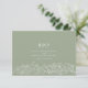 Stylised fleur de lis botanical line art wedding with RSVP and meal options. Beautiful line art featuring, spring blossom, tendrils and butterflies. A simple sage green and white card that can be personalised with your own monogram initials and meal option details. Great for keeping costs down when planning a sit down dinning event. Matching invitations and other matching items and colour options are available and or can be created on request. © Original drawing and design by Sarah Trett for www.mylittleedenweddings.com on Zazzle.