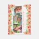 This cute Mother's Day blanket offers space for 3 pictures of her children. The design is accented with coral, pink and yellow watercolor flowers on a white background. Personalise with the names of the children.