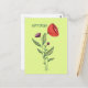 Spring flowers postcard with a line art of abstract pretty simple flowers in green, purple and coral red colours and the customisable text "Happy Spring!".