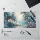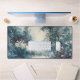 This desk mat features a watercolor style painting of a forest with trees and pink spring flowers. You can customise the design with any name you like.