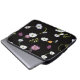 The sleeve is made of nice feeling material and seems very durable. I'm not sure how easy it'll be to clean, but the construction seems sound and the fabric is quick thick. I also like the double zipper. The printing is lovely and appears durable. The white on black contrast is nice, and the design very elegant.
