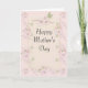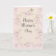 Mother's day card with a rosy peach background with pink and green flowers and foliage.. Victorian era look