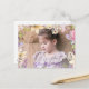 Personalise this beautiful spring florals photo postcard with any photo of your choosing. Change the name to the subject of your photo or the location and date. Pretty flowers will adorn your photo in an instant and with a soft glow below will highlight your photo with a pretty violet script. Type in any words and you will have a custom photo postcard to send to friends and family. Use a group photo, a single person or child, a favourite location, or a cute pet. The choice is all yours!