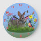 Spring Flowers, Robin, and Bunny Rabbit Large Clock