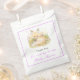 Pretty baby shower favour bag with an adorable fox and pink and purple flowers. Perfect for a spring or summer baby shower. The words can be changed to suit your own details or requirements