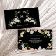 These lovely business cards feature a stunning, watercolor floral crest with your monogram in the centre. A dark black background sets off the pretty, pastel pink and blue flowers and green leaves. Perfect for any stylish or feminine business such as florist, wedding coordinator, spa or salon, or anything beauty related.