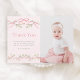 This flat 1st birthday photo thank you card features a pink and green blossom floral border adorned with butterflies and ribbons. For more advanced customisation of this design, please click the BLUE DESIGN TOOL BUTTON above!