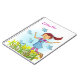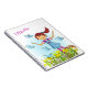 Cute graphic art of a dark haired girl in spring time chasing birds in a field of daffodils and wildflowers. Customise with your girls name, currently reads Ellbella. Original graphic art and design by Sarah Trett.