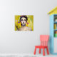 A gorgeous goddess of spring with pink and yellow flowers on a yellow background