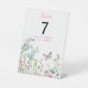 Pretty wedding table number sign with wildflowers in pink, and cute butterflies. Perfect for a spring or summer wedding. The words can be changed to suit your own details or requirements