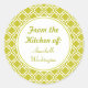A bright spring green pattern decorates these personalised kitchen stickers. Change the name to personalise these stickers. Use these stylish stickers for gifts, baking, etc....The design is from original art.