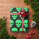 Spring Green on Black Skulls Wrapping Paper
