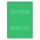 Plain and simple, spring green, tented reserved seating card. Thin, printed white "reserved" word will appear on both sides of this card once it's folded (after purchase). Or, you may remove one of the words for text to show on one side only. Neutral theme for any type of gathering, elegant or casual.