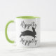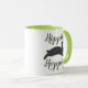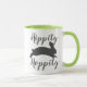 Spring mug featuring the phrase "hippity hoppity" and bunny silhouette.