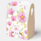 This fluffy white rabbit is peaking out of his rabbit hole to find spring in full bloom. Beautiful pink flowers are featured on the front and back panels. On the sides there's a pink and yellow striped, coordinating design.