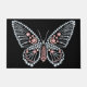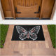 Jewelled Rhinestone Butterfly Rug in red white rhinestone diamonds. Welcome Sparkly butterfly bling Mat Home Decor. Hand drawn multi-coloured jewels decorating a butterfly shape on a black background,. Front or back door or kitchen rug mat, Customise your text, colour, style on your jewelled butterfly mat to match your taste. Note: rhinestones are not actual, this is hand drawn jewel design on butterflies snap.