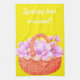 blue kitchen towel has a basket of purple and pink flowers just in time for spring