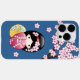 Spring Kokeshi Doll - Cute Japanese Geisha on Blue Case-Mate iPhone Case
